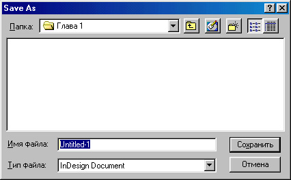 Команды Save As и Save a Copy в общем случае предназначены для сохранения копии документа под другим именем. Отличие между ними в том, что первая оставляет открытой сохраненную копию, а вторая — первоначальный документ. После выбора одной из этих команд появляется системное окно сохранения файла (Save This Document As в первом случае и Save A Copy As — во втором (рис. .49)). Ваша задача — выбрать папку для сохранения документа, ввести имя файла в поле File name и выбрать формат в списке Save as type. Программа предлагает только два формата для сохранения файла — документ InDesign и шаблон InDesign.