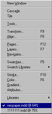 Рис. 1.11. Список открытых публикаций в меню Windowназад | содержание | вперед Поделитесь этой записью или добавьте в закладки |