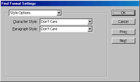 Рис. 10.3. Диалоговое окно Find Format Settings (вкладка Style Options)