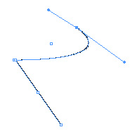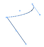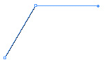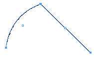 Рис. 11.8. Построение контура с угловой точкой Также просто установить угловую точку и с двумя управляющими линиями. Такая точка соединяет два криволинейных сегмента под углом. Постройте первую точку, вытянув из нее управляющие линии (гладкая точка). Постройте вторую точку и вытяните управляющие из нее. Затем нажмите клавишу <Alt> и перетащите одну из управляющих линий активной точки. Управляющие стали независимыми — создана угловая точка. Постройте еще один сегмент — между созданными сегментами образовался угол (рис. 11.8). При построении контура может потребоваться чередование сегментов разной формы — прямых и криволинейных. Для этого применяют угловые точки с одной управляющей линией. Например, чтобы построить пару сегментов, первый из которых прямой, а второй криволинейный (рис. 11.9), установите первую точку, не вытягивая из нее линий. Поставьте вторую точку. Отпустите кнопку мыши, затем снова нажмите ее и вытяните из второй точки управляющую. Она будет единственной и определять форму сегмента, следующего за данным. Постройте очередной сегмент — он будет представлять собой кривую, а предыдущий останется прямым.