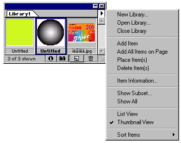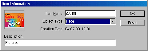 назад | содержание | вперед Использование библиотек Графические материалы можно помещать в публикацию не только из внешнего приложения, но также из палитры библиотеки. Некоторые аспекты работы с палитрой библиотеки для текстовых материалов уже обсуждались нами в главе 8. Общие принципы работы сохраняются и для изображений. В палитру можно поместить любое имеющееся в публикации изображение и затем снова вставлять его в эту же или любую другую публикацию. Поместить изображение в палитру можно, нажав пиктограмму с изображением страницы в нижней строке палитры при выделенном в публикации изображении (рис. 12.24), а также перетаскиванием объекта мышью в окно палитры или командой Add Item меню палитры. Элементы библиотеки отображаются в палитре в виде миниатюр или списка, в зависимости от выбора, сделанного в меню палитры:Thumbnail View или List View, соответственно. После того как изображение добавлено в библиотеку, ему можно сопоставить название, тип и описание. Первоначально изображение помещается в палитру с именем "Untitled", с автоматически определенным типом и незаполненным полем описания. Эти данные можно изменить в любой момент, дважды щелкнув мышью на миниатюре элемента в палитре библиотеки (рис. 12.25) или нажатием кнопки с изображением буквы "i" в нижней части палитры. По этим атрибутам в любой момент можно осуществлять поиск. В результате поиска в палитре остаются только те элементы, которые удовлетворяют критериям поиска. Вслед за этим вы можете дополнительно конкретизировать критерии поиска и осуществить его уже только среди найденных на первом этапе элементов. Такой многоступенчатый последовательный поиск можно производить сколько угодно раз. Чтобы снова вернуться к отображению всех элементов библиотеки, выберите команду Show All меню палитры. Диалог параметров поиска открывается командой Show Subset меню палитры (рис. 12.26) или нажатием кнопки с изображением бинокля в нижней части палитры.