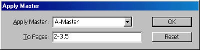 назад | содержание | вперед Выбор и применение шаблона Список всех имеющихся в публикации страниц-шаблонов всегда у вас перед глазами в палитре Pages. После раскрытия списка в нем можно выбрать любую из страниц-шаблонов публикации. При этом активность переводится на соответствующую шаблон-страницу. Она отображается на экране, и вы можете ее отредактировать (см. раздел "Создание новой шаблон-страницы и редактирование шаблонов" этой главы).Для того чтобы применить страницу-шаблон к странице документа, перетащите пиктограмму шаблон-страницы (из нижней части палитры Pages) к пиктограмме любой страницы публикации (в верхней части палитры Pages). На этой странице публикации появится все, что вы поместили на соответствующую шаблон-страницу.Шаблоны можно применять как к отдельным страницам, так и разворотам. В результате страницы разворота могут использовать различные шаблоны. Если в палитре Pages перетаскивать мышью пиктограмму шаблона к пиктограмме отдельной страницы документа, то шаблон будет применен только к этой странице. Если же перетаскивать пиктограмму шаблон-страницы к номерам страниц в развороте, то шаблон будет применен ко всему развороту.По пиктограммам, представленным на рис. 15.12, видно, что к левой и правой страницам разворота 3—4 применены различные страницы-шаблоны. Правая сторона разворота оформляется в соответствии с дополнительной страницей-шаблоном с именем B-Master. Для быстрого применения шаблон-страницы ко многим страницам служит команда меню палитры Apply Master to Pages, позволяющая указать список страниц. На рис. 15.13 представлено диалоговое окно Apply Master. В поле То Pages указывается произвольное количество страниц. Список составляется с помощью тире и запятых. Например, список 1-4,6,8- означает применение шаблона к страницам с первой по четвертую, шестой странице и всем страницам, начиная с восьмой и до конца документа.