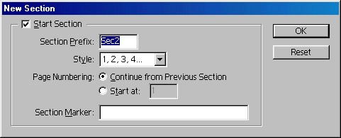 Рис. 15.25. Диалоговое окно New SectionЧтобы начать новый раздел, установите в диалоговом окне New Section флажок Start Section.Каждый раздел имеет идентифицирующий его префикс. Префикс должен иметь не более пяти символов. Он вводится в поле Section Prefix. Этот маркер используется в поле Go to Page в окне документа для ввода номера страницы, принадлежащей какому-либо разделу. Кроме того, это поле всегда показывает, к какому разделу относится текущая страница. Из-за ограниченности размера данного поля лимитирована и длина префикса.Если префикс предназначен в InDesign "для внутреннего использования", то имя раздела часто должно фигурировать на страницах публикации. Чаще всего имя раздела указывают в колонтитуле каждой (или каждой второй) его страницы. Имя раздела не ограничено по длине и вводится в поле Section Marker.Нумерация страниц в разделе может продолжать нумерацию страниц предыдущего раздела, а может начинаться сначала. В первом случае установите переключатель Continue from Previous Section группы Page Numbering. Во втором случае следует установить переключатель Start at и в имеющееся рядом поле ввести номер первой страницы раздела.При смене нумерации в разделах внимательно следите за сохранением четности страниц. Если вы, например, объявите началом раздела левую страницу разворота и начнете в нем нумерацию с единицы, то четные и нечетные страницы в этом разделе поменяются местами. Это наверняка приведет к плачевным последствиям для верстки. В небольших изданиях со сложной структурой, например в руководствах, или для нумерации на вкладках, страницы нумеруют не только арабскими цифрами. В InDesign вы имеете широкий выбор стилей нумерации, задаваемый списком Style. Это арабские цифры, римские цифры (прописные и строчные), буквы латинского алфавита (прописные и строчные).Как только вы закроете диалоговое окно New Section нажатием кнопки ОК, выделенная страница станет началом раздела, и в палитре Pages над ее пиктограммой появится маркер раздела.назад | содержание | вперед Поделитесь этой записью или добавьте в закладки |