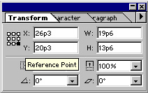 назад | содержание | вперед Координаты объектов Любому элементу верстки в InDesign, размещенному на странице или рабочем столе, соответствуют точные координаты. Изменение этих координат приводит к перемещению элемента в заданное ими новое положение. С помощью линеек или палитры Transform можно определить и изменить координаты объекта.InDesign использует прямоугольную систему координат, начало которой по умолчанию находится в левом верхнем углу страницы. Положение начала координат можно изменить и заблокировать (см. главу 1). Координату любой точки документа можно визуально определить по измерительным линейкам. Предварительно следует включить их отображение командой Show Rulers меню View. Единицы измерения координат и масштаб линеек пользователь определяет с помощью диалогового окна Preferences (см. главу 3).Каждому объекту, будь он графический или текстовый, сопоставляется одна координата и линейные размеры — высота и ширина. Для непрямоугольных объектов в качестве высоты и ширины принимаются измерения описывающего объект прямоугольника, т. н. габаритного прямоугольника. При выделении объекта инструментом Selection вокруг объекта появляются черные квадратики, называемые манипуляторами. Манипуляторы располагаются по углам и посередине сторон габаритного прямоугольника. Перемещая манипуляторы с помощью инструмента Selection, можно масштабировать объекты (см. ниже).Координатой объекта считается координата его якорной точки (reference point). Якорной точкой может быть любой из манипуляторов или центр габаритного прямоугольника. Какую из этих точек считать якорной, можно определить с помощью палитры Transform. В левой части палитры расположен переключатель, символически изображающий габаритный прямоугольник. Белыми квадратами на нем отмечены возможные варианты размещения якорной точки, а черным квадратом — ее текущая позиция. Щелчок на квадрате определяет соответствующую точку как якорную (рис. 16.1). При изменении якорной точки изменяются и цифры, находящиеся в полях Х и Y палитры. Это, соответственно, горизонтальная и вертикальная координаты объекта. При переопределении якорной точки изменяются и координаты объекта.