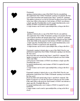 Рис. 16.28. Использование висячих графических элементов как маркеров перечнейКак и для любого вложенного графического изображения, положение висячего графического элемента по вертикали может быть настроено смещением базовой линии или просто перемещением мышью при активном инструменте Selection. Проделывать такую настройку для-каждого висячего изображения в публикации довольно хлопотно. Этот процесс можно в значительной степени автоматизировать, используя команду Find.В каждый висячий отступ вместо изображения помещается уникальный набор символов, который можно легко обнаружить в публикации посредством команды Find, например $$$, %%% и т. п. Затем требуемое изображение помещается только в один абзац и настраивается его смещение относительно базовой линии строки. Инструментом Type выбирается настроенное изображение и копируется в системный буфер. После этого командой Find отыскиваются все вхождения в текст указанной вами комбинации символов, т. е. те места, где должна располагаться висячая графика. После отыскания очередного вхождения командой Paste в публикацию вставляется содержимое системного буфера. При этом настройка положения базовой линии для вклеенного графического элемента сохраняется.Для того чтобы прием сработал абсолютно, необходимо выделять копируемое изображение инструментом Type, а не Selection. В последнем случае настройка базовой линии не сохранится, т. к. при этом используется "графическая сущность" вложенного изображения, для которой понятие базовой линии не имеет смысла. При использовании инструмента Type вложенное изображение трактуется как символ текста, для которого могут быть заданы соответствующие атрибуты, в т. ч. и смещение базовой линии.назад | содержание | вперед Поделитесь этой записью или добавьте в закладки |