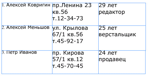 Рис. 16.30. Абзацные линейки использованы как фон ячеек таблицы