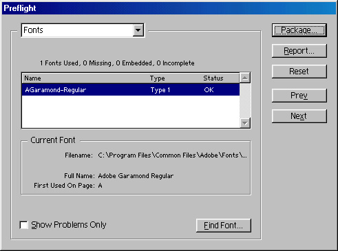Рис. 19.28. Диалоговое окно Preflight, раздел Fonts