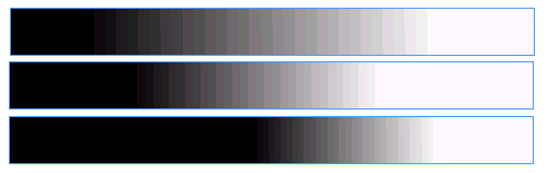 назад | содержание | вперед Рассчитывайте количество переходов в цветовых растяжках Создавая цветовую растяжку, вы предполагаете, что на отпечатке будет сделан плавный переход от начального полутона серого (или хроматического цвета) к конечному. Но из-за того, что переход полутонов реализуется механическими средствами, вместо плавного перехода получается ступенчатый. Это может быть практически не заметно, но может и сильно бросаться в глаза. Степень ступенчатости зависит от линиатуры используемого растра, разрешения лазерного принтера или фотонаборного автомата, различия начального и конечного значения растяжки и длины растяжки. Вполне возможно такое сочетание значений этих параметров, при котором количество переходов тона будет явно недостаточным.