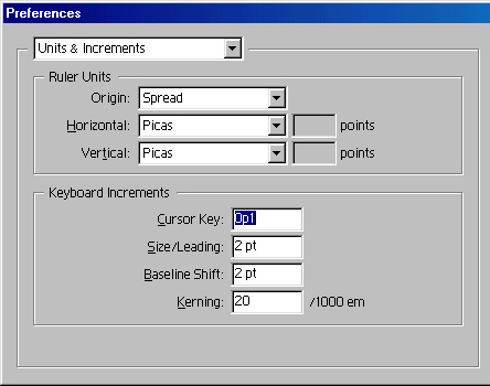 Рис. 3.9. Диалоговое окно Preferences, раздел Units & IncrementsОбъекты, размещенные на странице публикации, можно перемещать, либо перетаскивая их мышью, либо нажимая клавиши управления курсором. В последнем случае достигается более высокая точность перемещения, если установленный в поле Cursor Key шаг достаточно мал. По умолчанию он равен 1 пункту. Поэтому каждое нажатие клавиши <4'> перемещает выделенный объект вверх на расстояние, заданное в поле Cursor Key. Если вы предпочитаете десятичную систему, то можете установить шаг равным, например, 0,5 мм или 0,25 мм.С помощью клавиатурных сокращений можно изменять не только положение объектов, но и настраивать параметры текста: кегль, интерлиньяж, смещение базовой линии, кернинг и трекинг. Шаг изменения этих параметров текста также задается в области Keyboard Increments диалогового окна Preferences. Поле Size/Leading задает шаг изменения кегля и интерлиньяжа в пунктах, поле Baseline Shift содержит шаг изменения смещения базовой линии в пунктах, а поле Kerning — шаг изменения кернинга в тысячных долях круглой шпации.назад | содержание | вперед Поделитесь этой записью или добавьте в закладки |