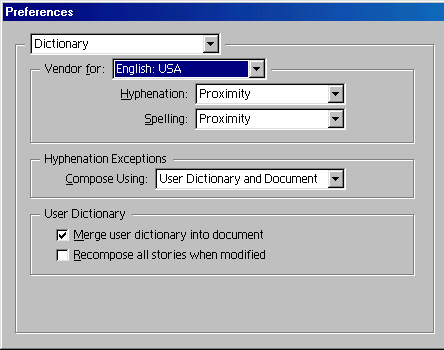 назад | содержание | вперед Раздел DictionaryВ стандартную поставку InDesign нходят словари переноса и орфографии для 21 языка (к сожалению, за исключением русского). Раздел Dictionary диалогового окна Preferences позволяет выбрать для каждого из языков словарь, используемый программой (рис. 3.13). Разумеется, этот выбор имеет смысл, если для каких-либо языков у вас имеется несколько разных словарей, например, от разных производителей.