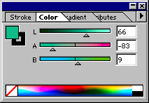 Рис. 4.10. Палитра Color в режиме LabТаким образом, палитра Color позволяет выбрать цвет для обводки и заливки выделенного объекта и задавать цвета по умолчанию. Выбор модели в палитре присваивает эту модель созданному цвету. Интересно, что создание умолчаний цвета производится только для контуров. Текст по умолчанию — черный, без обводки, фреймы лишены и обводки, и заливки.назад | содержание | вперед Поделитесь этой записью или добавьте в закладки |