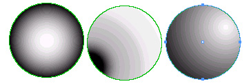 Рис. 4.17. Создание градиентов: а — линейного, б — радиального Для радиального градиента можно создать очень интересный эффект: если щелкнуть инструментом Gradient на периферии построенного радиального градиента, то точка щелчка станет началом цветового перехода, а расположение и радиус градиента останутся прежними. Возникающий эффект похож на свет прожектора (рис. 4.18).