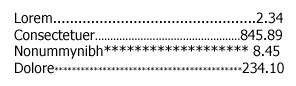назад | содержание | вперед Отточия В некоторых документах типа перечня (оглавления, прайс-листы) между столбцами таблицы оставлен большой пробел. Для удобства чтения в них используются отточия (рис. 7.31). Для задания отточия перейдите в диалоговое окно Tabs и выберите маркер позиции табуляции, к которой будет вести отточие. В поле Leader задайте вид отточия, набрав нужные символы с клавиатуры. Шрифт, кегль и другие атрибуты символа отточия сначала всегда совпадают с атрибутами текста, в котором оно набрано.