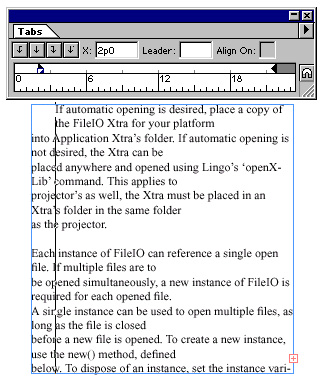 назад | содержание | вперед Установка отступов Для установки отступов используются специальные маркеры на линейке табуляции (рис. 7.32). Для задания отступа выделите его и перетащите на нужную позицию (можно ввести значение этой позиции в поле X). Отступ слева состоит из двух частей. Верхняя часть соответствует положению абзацного отступа, нижняя — положению отступа слева. Для одновременного перемещения обоих отступов следует выделить нижнюю часть маркера. Можно смещать отдельно абзацный отступ. Для этого выделите верхнюю часть маркера. Задание отступов на линейке отображается в палитре Paragraph и наоборот. Из этого факта следует вывод, что имеется возможность задавать один и тот же атрибут двумя разными способами — кому как удобнее.