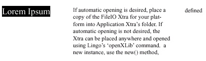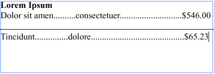 Рис. 7.36. Таблица, образованная линейками абзацаИмпорт таблиц рассматривается в главе 9, а форматированию их уделено внимание в главе 16. Для таблиц, как ни для какого другого текста, актуальна настройка длин строк. Для этого в основном применяется редактирование атрибутов символов, прежде всего трекинг и регулирование ширины интервалов. назад | содержание | вперед Поделитесь этой записью или добавьте в закладки |