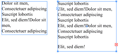 назад | содержание | вперед Избыточный текст и цепочки фреймов (Часть I)Площадь фрейма может оказаться недостаточной для отображения всего текста, который в него помещен. В этом случае нижний индикатор помечается красным крестиком — это означает, что за пределами фрейма есть текст. Для того чтобы разместить его в публикации, можно увеличить размер фрейма (рис. 9.6). Когда текст размещен полностью в одном фрейме, индикаторы становятся пустыми.