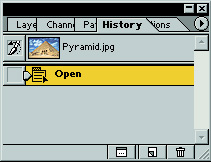 Рис. 1.12. Процесс изменения изображения и запись в протоколе 7. Поместите курсор на изображение. Нажмите кнопку мыши и протащите курсор по диагонали, создавая рамку обрезки. Отпустите кнопку мыши (рис. 1.13, а). Созданную рамку теперь можно сместить или изменить ее размер, используя манипуляторы. Более подробно о трансформации изображений речь пойдет в главе 3. 8. Сделайте двойной щелчок внутри рамки. Изображение обрезано по указанной границе, области за ее пределами перестали существовать. В протоколе появилась еще одна запись ( Crop) и рядом с ней — значок инструмента (рис. 1.13, б). 9. Нажмите на ползунок в левой части последней строки протокола и перетащите его вверх на одну строку. Вы отменили команду кадрирования. Перетащив ползунок еще выше на несколько действий, вы отмените их все (рис. 1.14). 10. Отмененные команды не исчезают из протокола, их можно снова вернуть. Для этого перетащите ползунок на отмененные строки, и соответствующие команды снова будут выполнены. По умолчанию в протоколе сохраняется двадцать последних команд. a