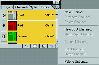 ![]() Рис. 3.85. Палитра Channels и кнопки управления каналов и меню 4.В палитре появится новый канал. Черным помечены маскированные области, белым — выделенные. Каналу автоматически присвоено имя Alpha 1. 5.Отмените выделение. Затем подведите курсор к строке альфа-канала и щелкните на ней при нажатой клавише Ctrl. Можно также загрузить альфа-канал щелчком на его строке, а затем — на кнопке загрузки с подсказкой Load channel as selection (Загрузка канала как выделения). Выделение опять появилось, канал загружен как выделение. 6.Снова отмените выделение в документе. СоветВ качестве выделения можно загружать любые каналы, в том числе и цветовые. 7.Щелкните на строке альфа-канала, теперь в окне документа будет виден только альфа-канал (рис. 3.86, а) — он активен. 8.Не отменяя активности альфа-канала, щелкните на значке глаза в строке совмещенного канала. Теперь в окне документа стало видимым само изображение, а поверх него в виде красной полупрозрачной пленки показан альфа-канал. Это режим наложения альфа-канала (рис. 3.86, б). 9.Сделайте двойной щелчок на строке канала. В окне Channel Options (Свойства канала) (рис. 3.87) поменяйте имя канала на Floor. При желании с помощью переключателя Color Indicates (Цветом показывать) можно изменить схему отображения маскированных и выделенных областей. По умолчанию активно положение Masked Areas (Маскированные области), т. е. цветом (черным или красным) показаны маскированные области. Поставив переключатель в положение Selected Areas (Выделенные области), вы заставите программу показывать цветом выделенные области. ПримечаниеВ положении Spot Color (Плашечные цвета) канал превращается в форму для плашечного цвета. Подробнее о печати плашечных цветов см. гл. 10. а